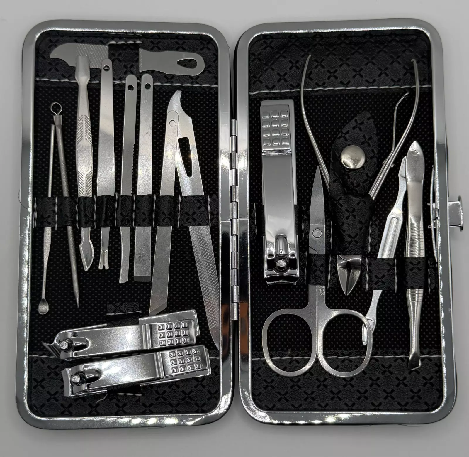 Ce kit a été conçu pour répondre aux besoins courants de soin des ongles. Il permet d’entretenir mains et pieds simplement, avec des outils bien rangés dans un étui rigide et compact.